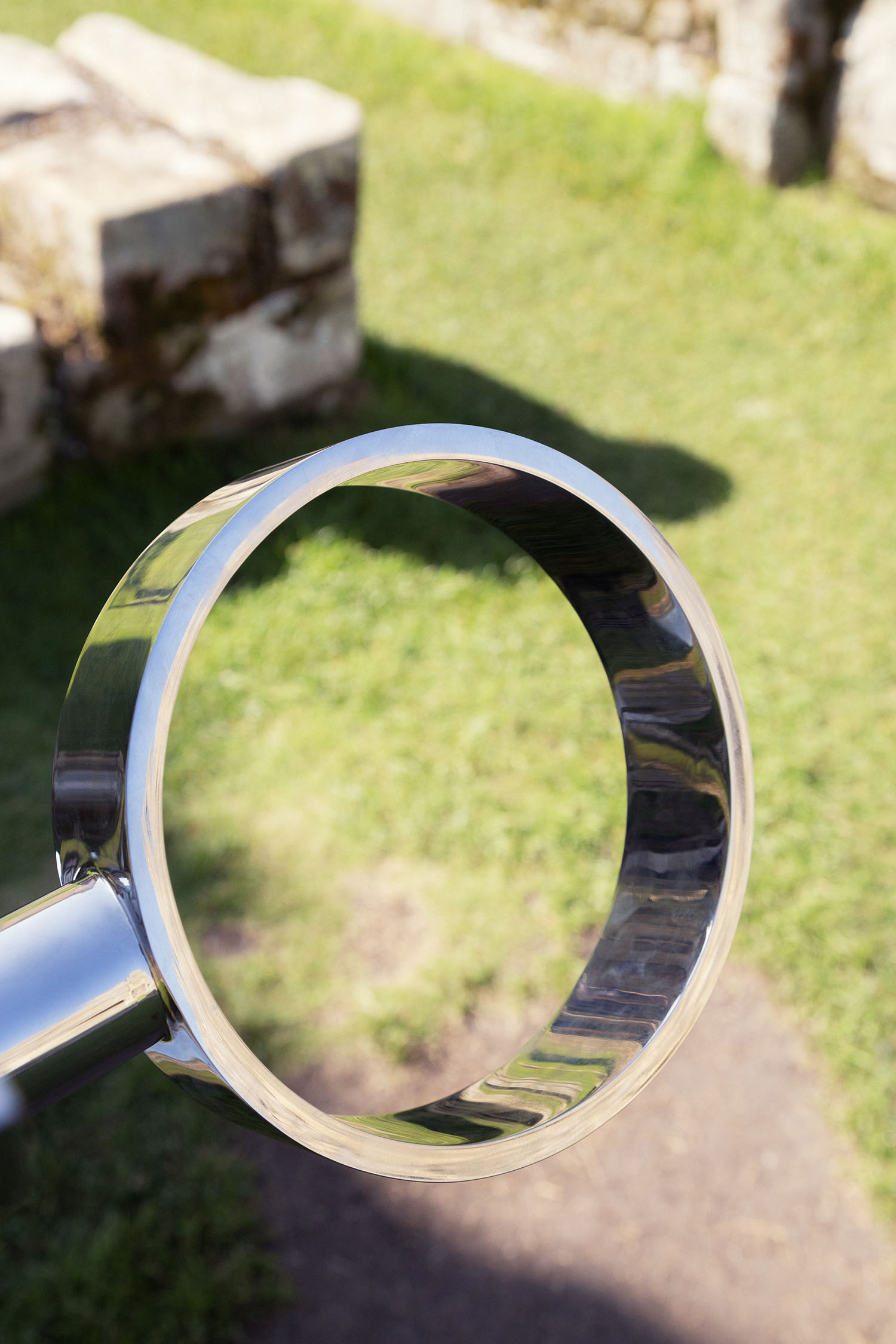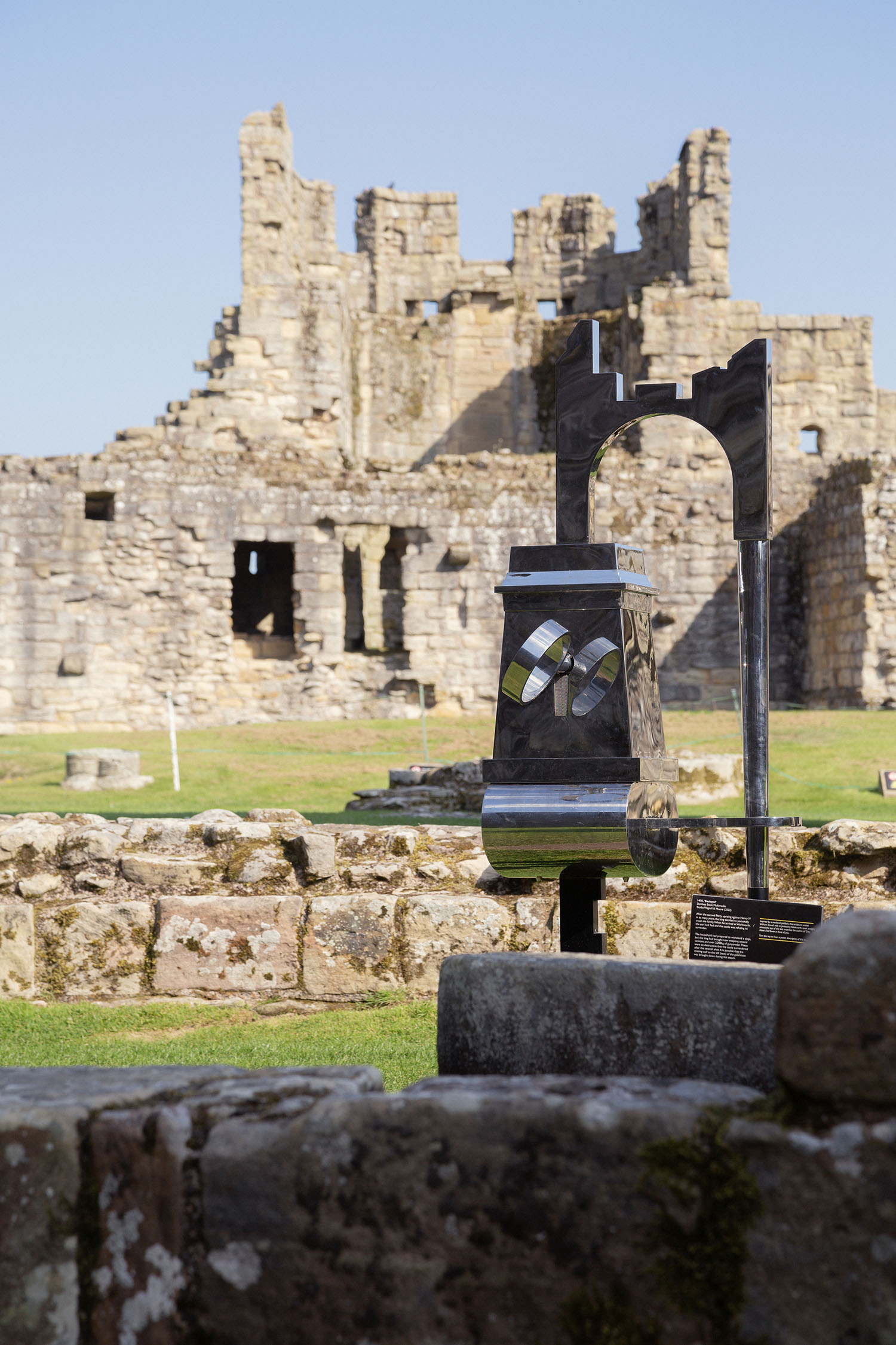 Visitors can turn the key with a satisfying ‘clunk’ to hear a poetic description of this tower. The lock body is made from mirror polished stainless steel which helps it blend into the surroundings of the castle, solar panels in the rear of the sculpture power the internal audio mechanism.